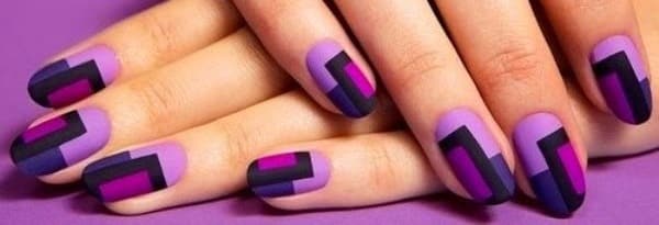 - Στην υποκατηγορία του γραμμικού στυλ βρίσκονται τα γεωμετρικά σχήματα, τετράγωνα, τριγωνάκια ή σχήματα με περισσότερες γωνίες, αν η επιφάνεια του νυχιού σας είναι μεγάλη. Αν επιλέξετε αυτό το πολύ μοδάτο nail art trend της νέας σεζόν, προτιμήστε να το εφαρμόσετε με δύο αποχρώσεις της ίδιας οικογένειας.